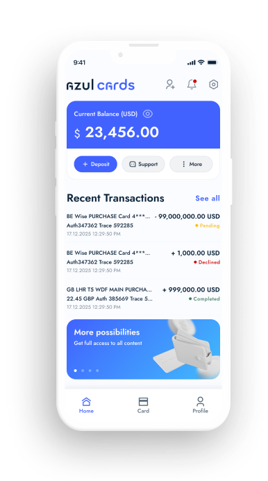 Note: Azul Card is intended for lawful use only. Users must comply with their local laws and regulations.